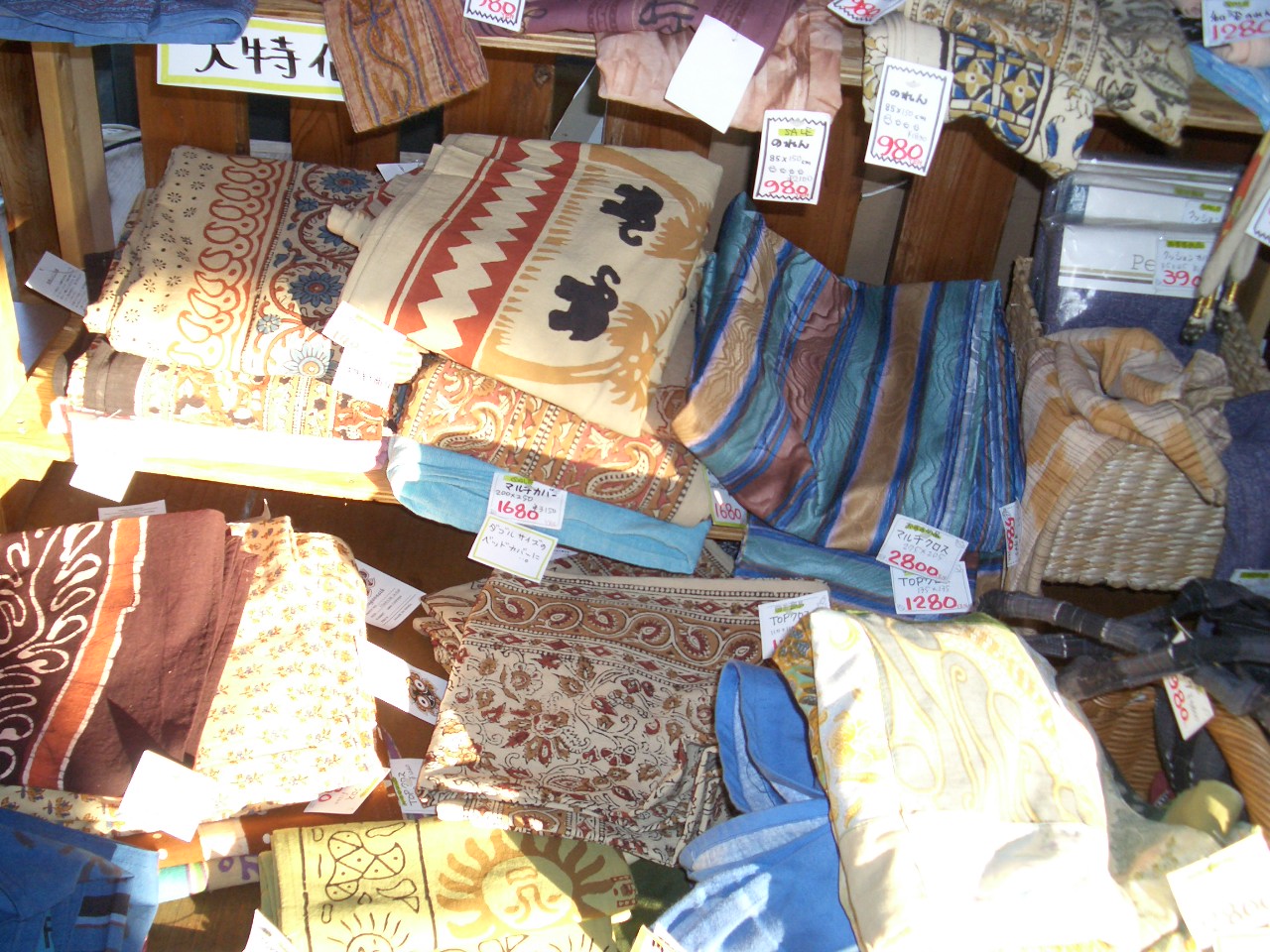 ビフォー アフター 和のコーナーも新しくなりました~^。^ アジアのコーナーも一箇所で見れるように!! 太田店も特価のファブリックが入荷しましたよ~。 インド綿のコーナーには、エプロンドレスやギャルソン、かっぽうぎなどなど、 昨日は、模様替えでなんだかんだで夜の11時までかかりました~(笑) みなさん、是非生まれ変わった太田店に遊びに来てくださーい!!