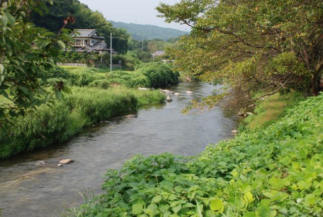 町屋の旧道を過ぎると国道349号と合流する。 わずかに直進したところで再び旧道の入口。 ここは見えるのは中里の少し手前の里川に架かる橋。 ここから旧道を進むと安産祈願で有名な玉簾観音がある。