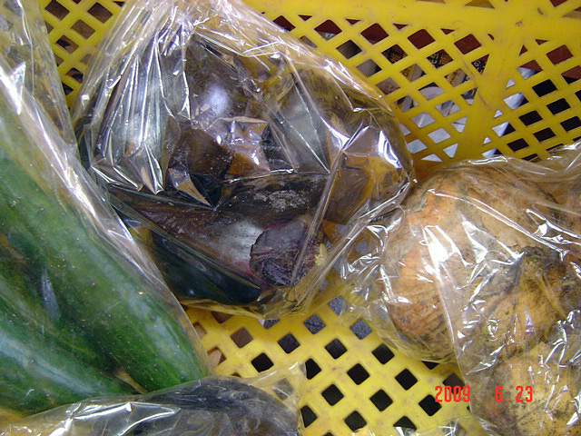 今日は、新タマネギ・キュウリ・なす・ジャガイモ・オカヒジキ・赤シソでした。
