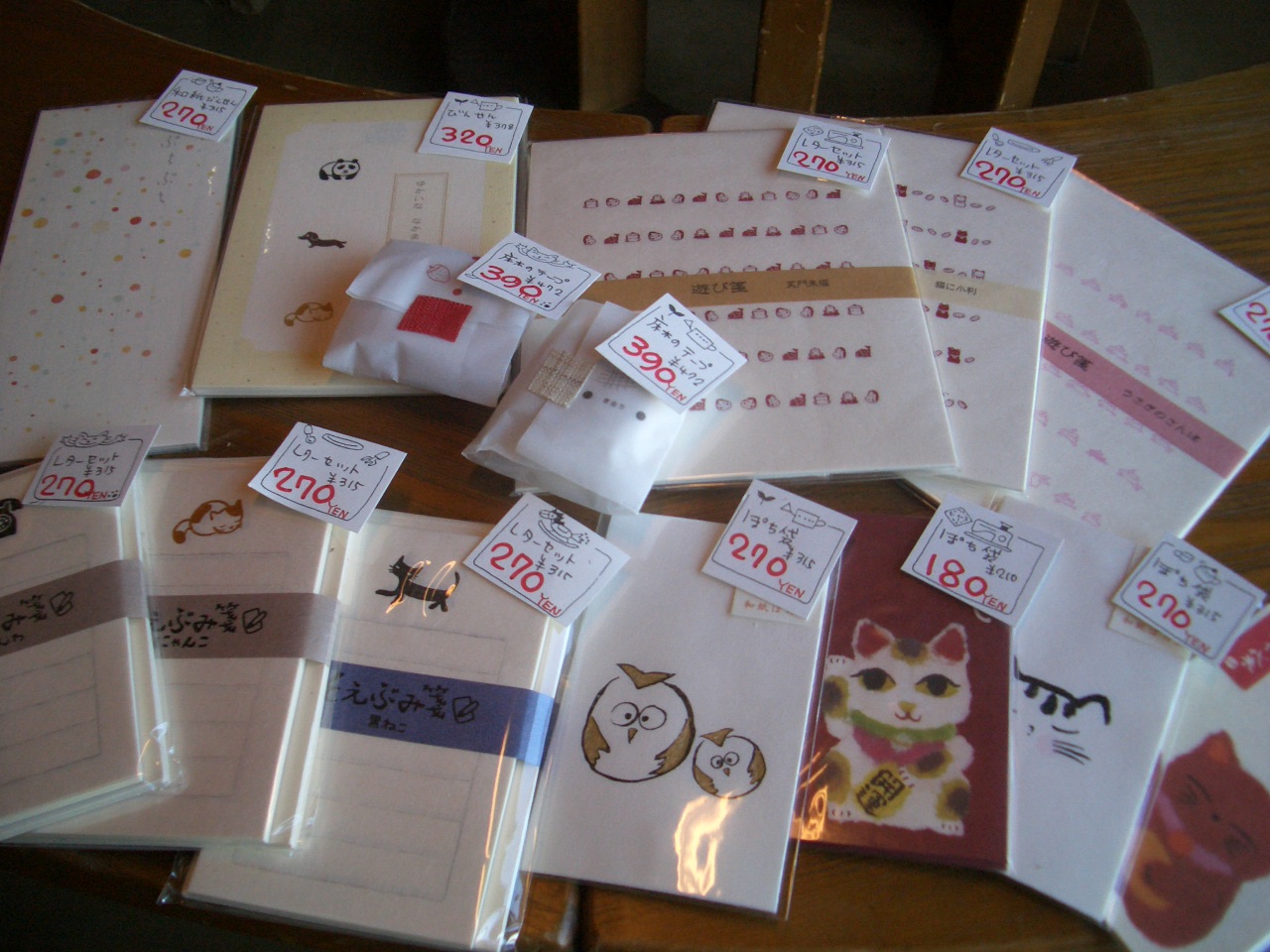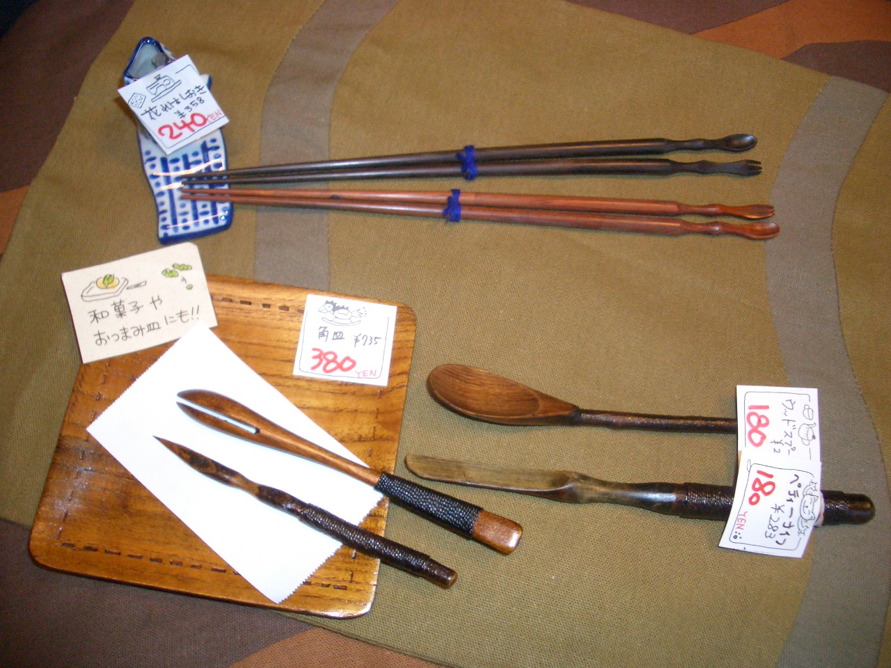 ¥3400→1280円 めだかが泳いでます。 新しい年にのれんも新しくしませんか? 他にも柄が色々ありますよ~。 印鑑ケースにもなる小物いれ¥1365→380円 メイク道具を入れてもよさそうなポーチ¥1260→380円 藍染で刺子のコースターが一枚100円!! お正月に揃えては? 上のお箸¥367→240円 スプーンとフォークのデザインになってるんですよ~! 和菓子ようじ¥236→160円 フォーク¥210→140円