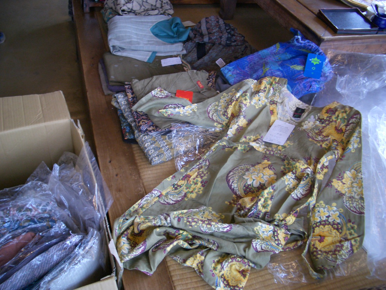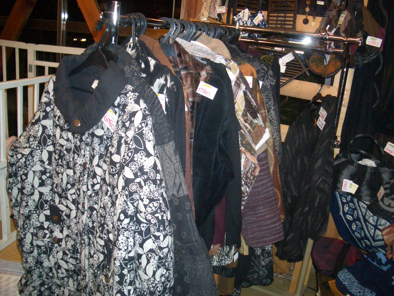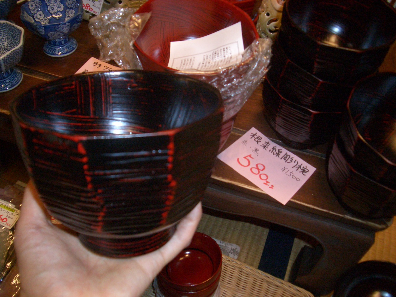 電車に揺られながら、東海店の店長と仕入れに行ってきました~。 今回は、太田店は和物中心に、東海店はカントリーが中心となってますので、 是非みなさん、はしごしてくださいね。 さっそく、渋いお洋服からアジアもの入荷しました~。 コート、ジャケット、スカートパンツ、ワンピースetc・・・ 漆塗りの御椀が大特価!!おせちにいかがですか? 人気の杯洗、こちらは、杯を洗うためのものらしいですが、おつまみを入れたり、 こけ玉を入れたり色々使えます。 香炉、飾っとくだけでもいいですね。 この他、明日からまた色々入荷予定です!!