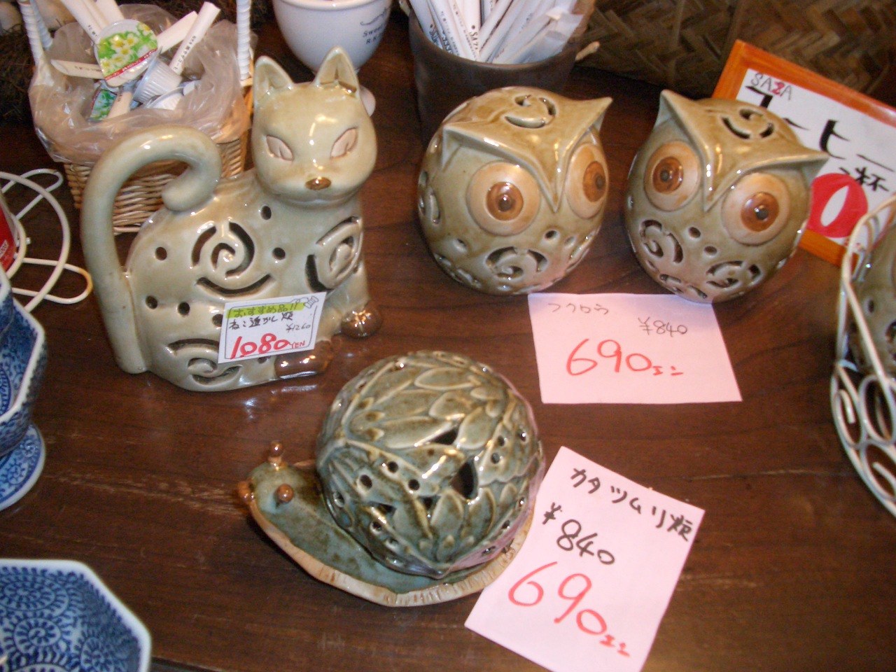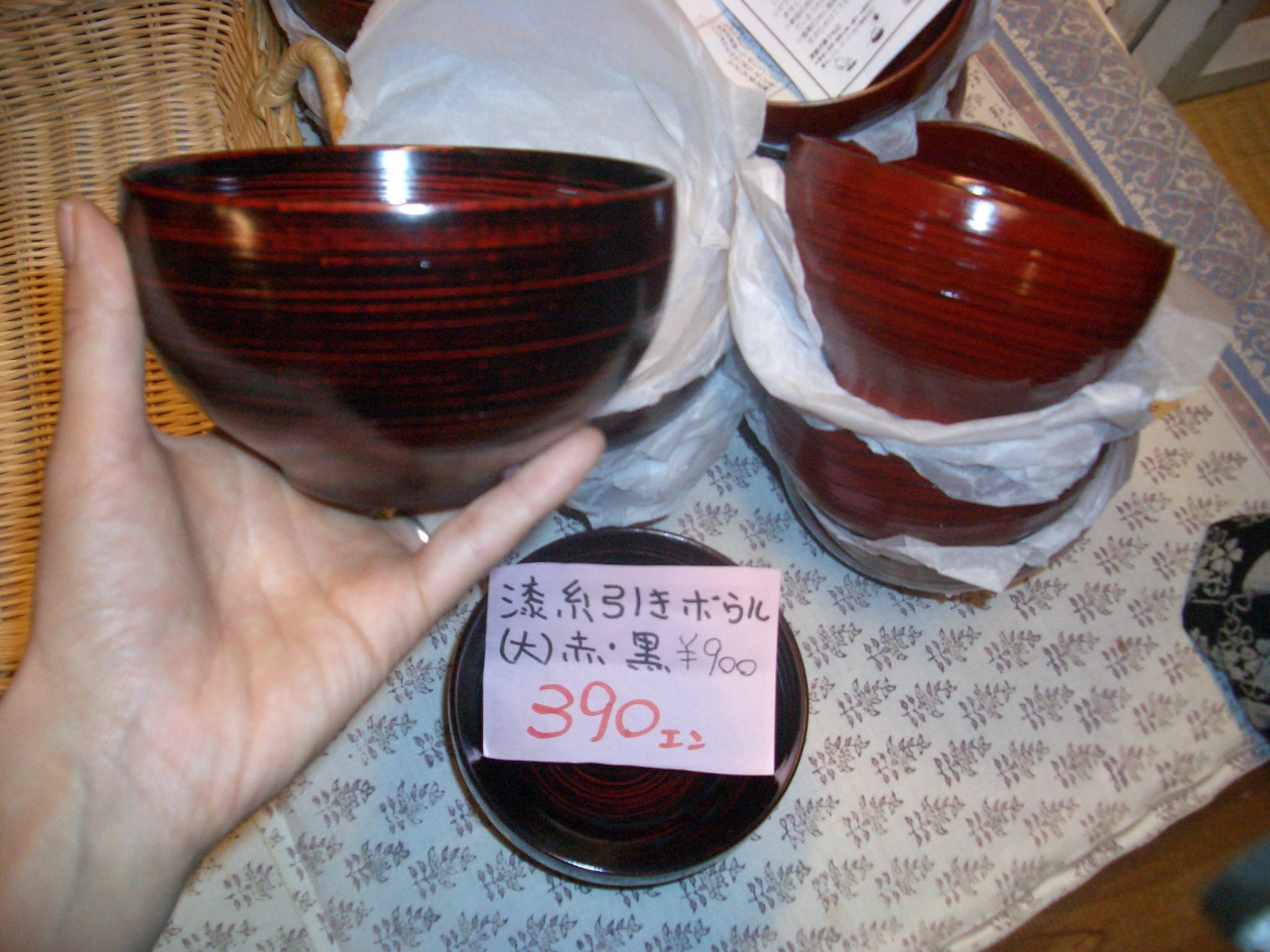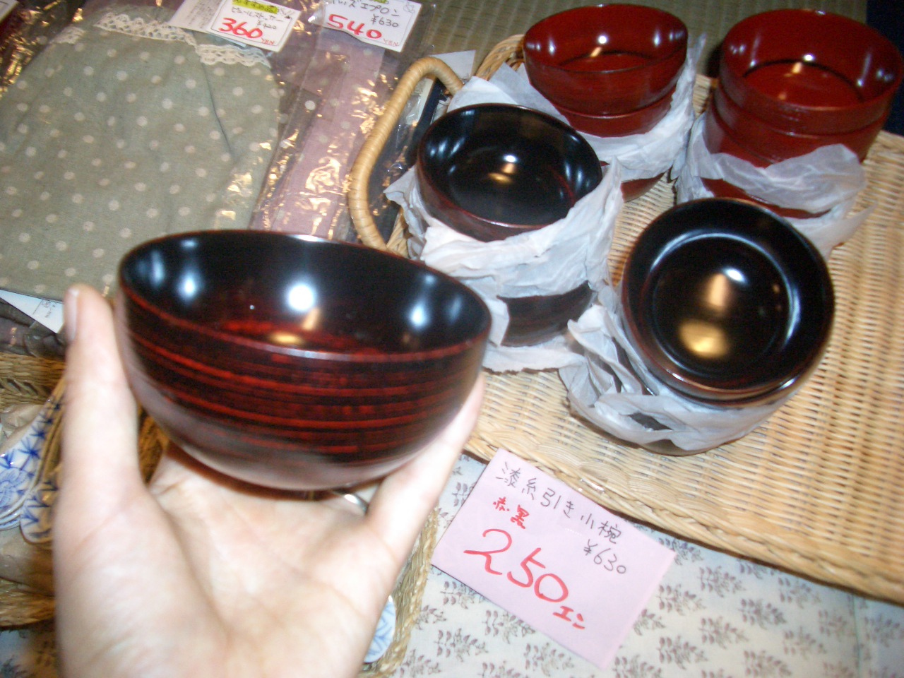 電車に揺られながら、東海店の店長と仕入れに行ってきました~。 今回は、太田店は和物中心に、東海店はカントリーが中心となってますので、 是非みなさん、はしごしてくださいね。 さっそく、渋いお洋服からアジアもの入荷しました~。 コート、ジャケット、スカートパンツ、ワンピースetc・・・ 漆塗りの御椀が大特価!!おせちにいかがですか? 人気の杯洗、こちらは、杯を洗うためのものらしいですが、おつまみを入れたり、 こけ玉を入れたり色々使えます。 香炉、飾っとくだけでもいいですね。 この他、明日からまた色々入荷予定です!!