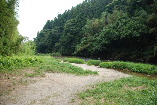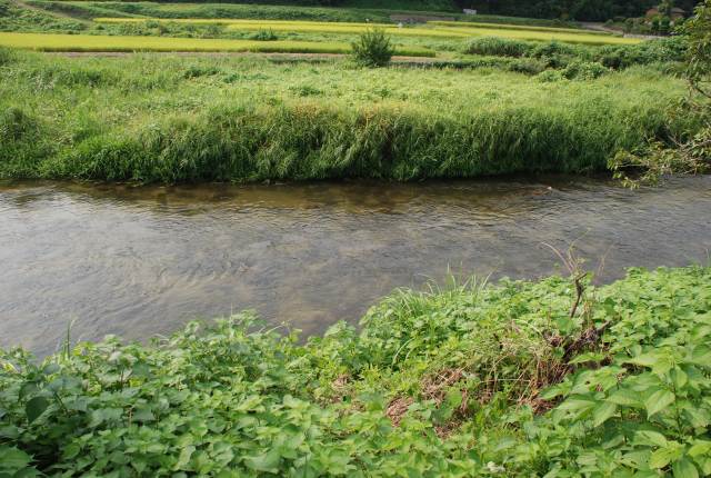町屋の旧道を過ぎると国道349号と合流する。 わずかに直進したところで再び旧道の入口。 ここは見えるのは中里の少し手前の里川に架かる橋。 ここから旧道を進むと安産祈願で有名な玉簾観音がある。