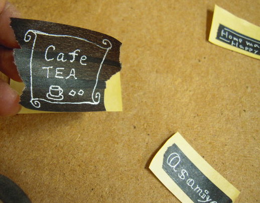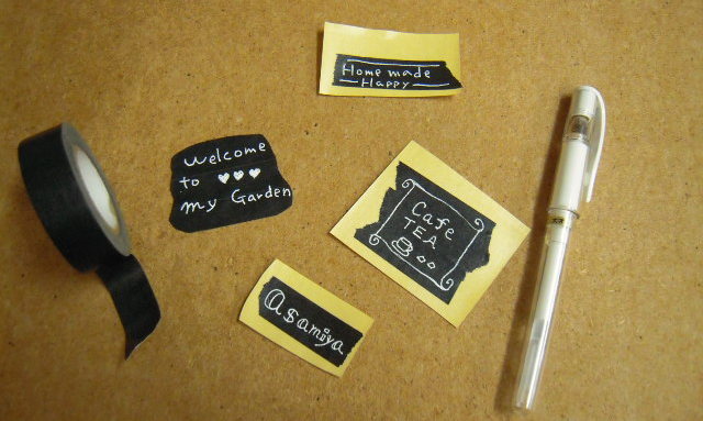 ③テープに白ペンでロゴや絵を描いていきます。