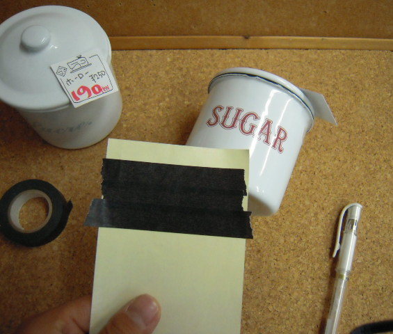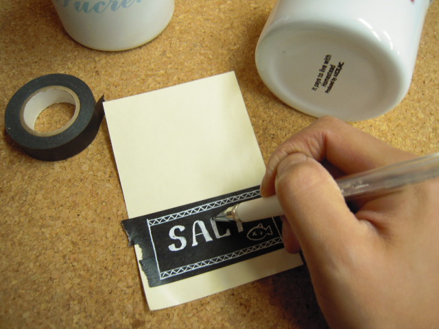 ①まず、ロゴが隠れるくらいの幅に、マスキングテープをシールの台紙にはります。