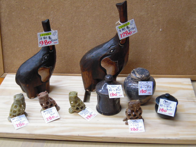 はなを上げているゾウさんは縁起が良いそうです。