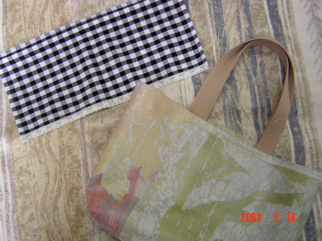 ・お試しで造った短いカフェカーテンとビニールコーティング生地のバック